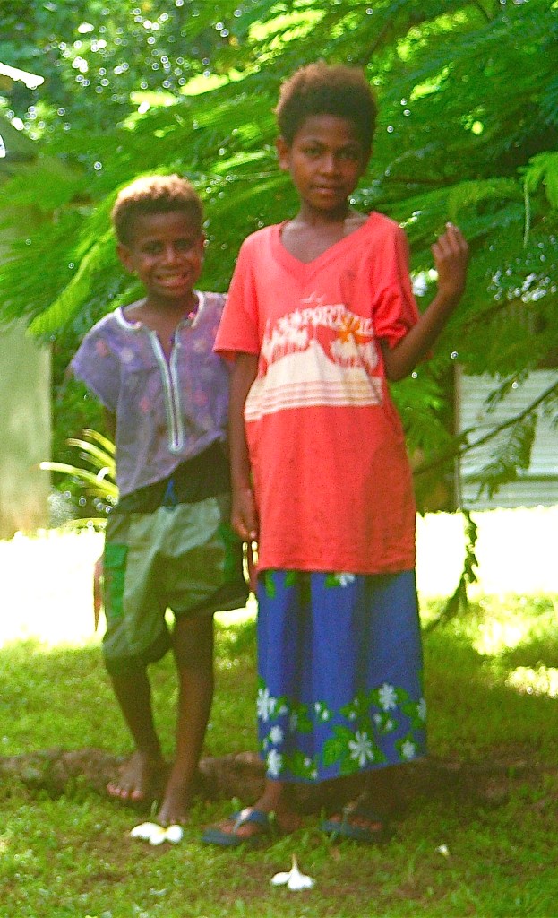 I love that the Pacific Islands are always such a sensory experience. Lush, verdant green flora is punctuated by the sharp brilliance of flowers. The natural tones and weaves of the simple buildings and dusty roads, and the earthy smell of the rich soil, makes me feel a wave of calm. There are the pungent smells of animals and humanity, so typical of village life in the tropics. Eyes are dazzled by the brightly, printed clothing that absolutely no one else could wear. I love hearing the music of their ukeles and drums, and their beautifully-toned voices in song. And most memorable are the warm, smiling, brown faces with soft eyes and gleaming white teeth. These are the images that the Islands conjure up for me.