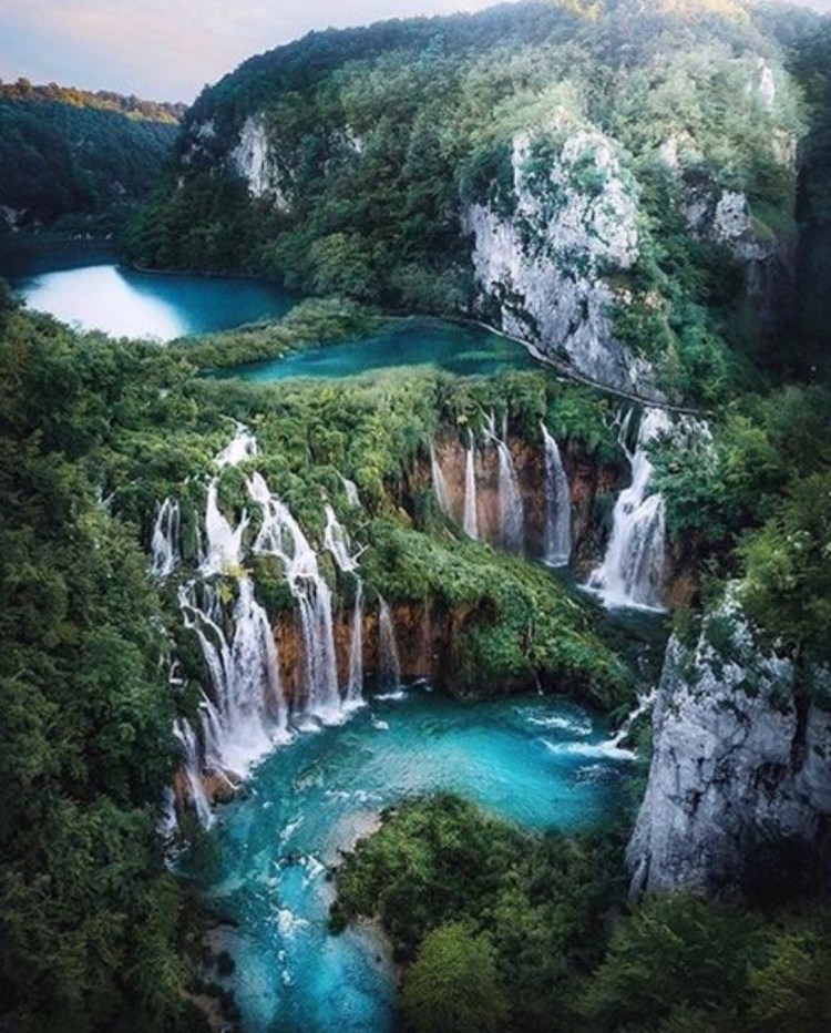 There are twelve named and many smaller unnamed upper lakes, and these cascade in a series of over ninety waterfalls to the lower lakes. These lakes, sitting on beds of impermeable dolomite, are fed from small above and underground rivers coursing over limestone and chalk. This gives the water a characteristic mineral content, when, mixed with the algae, moss and bacteria of the lakes, has created natural travertine dams, a quite unique phenomena. The travertine grows about a centimetre a year, so the dams are in constant geological change.